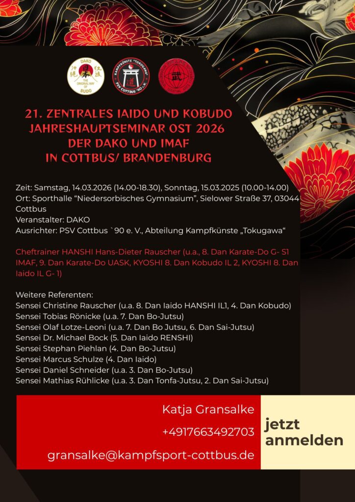Am Wochenende vom 20.-21. September 2025 fand der nun mittlerweile 20. Bundeszentrallehrgang in Cottbus der DAKO / IMAF statt. Mit 120 Teilnehmern aus den verschiedensten Dojos von nah und fern, sind wir alle an diesem Wochenende bei wunderbarem Sonnenschein nochmal so richtig ins Schwitzen gekommen. Aber nicht nur das Wetter
