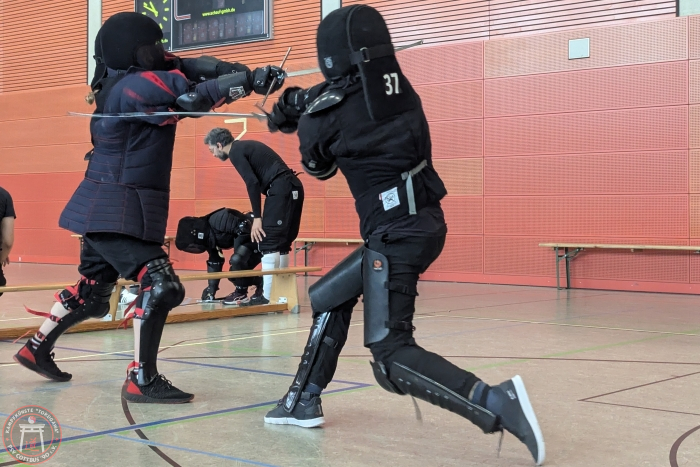 Am Wochenende vom 26.-27.7.2025 waren wir beim Berliner Verein Kenshinkai und haben an einer offenen Halle und einem Langschwert-Turnier für die deutsche und internationale Rangliste teilgenommen. Zwar hat es bei Bernd, Johannes, Lukas und Marcus nicht über die Pool-phase hinaus gereicht, aber vor allem auf die Gesamtleistung unserer Neulinge sind wir stolz. Immerhin waren die drei Spitzenreiter der deutschen Herren und die Nummer eins der Damen nebst den Kaderfechtenden anwesend. Nora hat es in der Damenkategorie sogar ins Achtelfinale geschafft und den Publikumspreis für schönsten Fechtstil abgeräumt. Bei Carl hat es bis zur Elimination im Achtelfinale der Herren gereicht und zumindest ein Lob der Kampfrichterin für sehr sauberes Fechten durfte er danach mit nach Hause nehmen. Dank und Anerkennung gehen auch an Tommy, der den ganzen Tag mit großer Ausdauer bei der Anmeldung und als Kampfrichter die Turnierorganisation unterstützt hat. Nächstes mal gerne wieder! (ch)