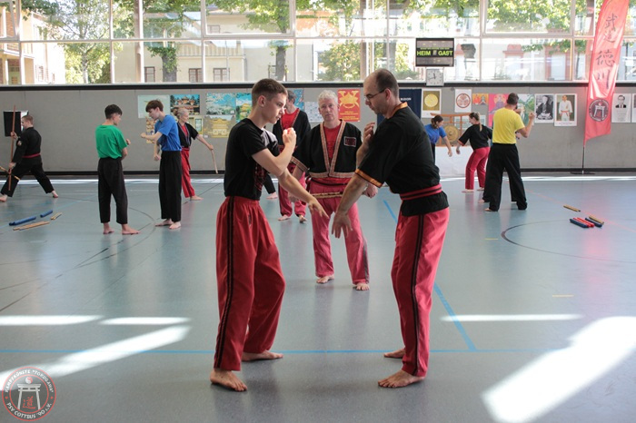 trainierten hierbei in der neu gestalteten Anlage und konnten unter der Anleitung von Sifu Heinz-Jürgen Naß (u.a. 8. DAN Shaolin-Kempo) und dank der erfahrenen Trainer und Meister, welche sich abwechselnd in die Trainingseinheiten einteilten, ausgiebig ihre Techniken im Shaolin Kempo verfeinern und neu gelerntes festigen. Nach der recht entspannten Anreise am