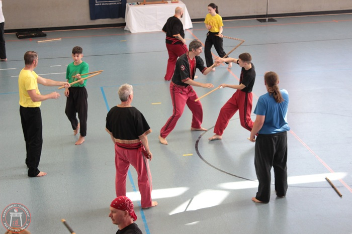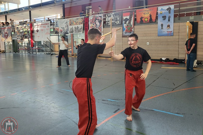 wurde – sowohl mit als auch ohne Sticks. Dieser Erweiterung des Reaktionstraining ohne Sticks wird auch als „Empty-Hand“ bezeichnet. Neben den Wettkampfvorbereitungen, die vor allem durch Übungskämpfe und Kampfrichtertraining geprägt waren, ist auch nochmal das Regelwerk für den Wettkampf auf die Probe gestellt und erläutert worden.