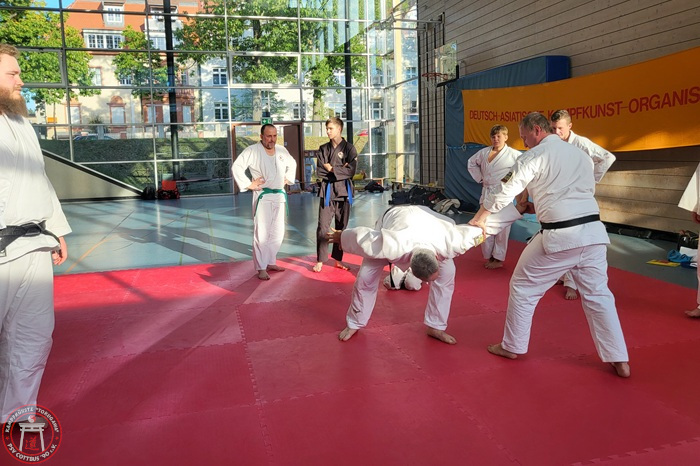 Hebel und so sind auch Hebeltechniken ein wichtiger Bestandteil des Trainings gewesen, welche auf der Mattenfläche ausgiebig trainiert wurden.