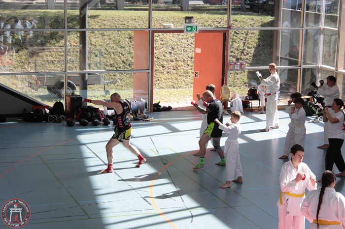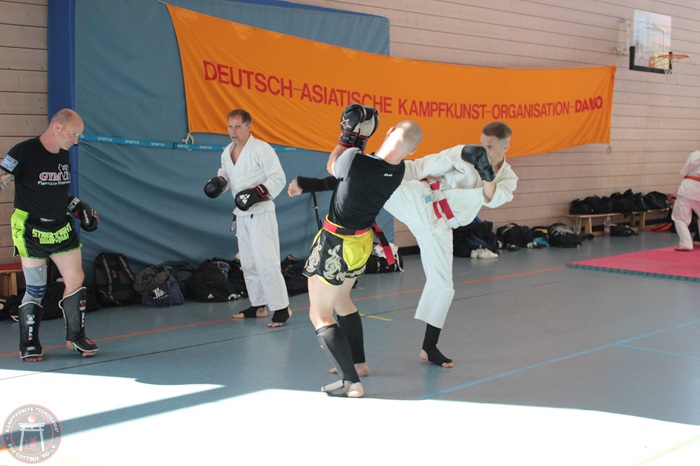 anderem Kicktechniken (High- und Low-Kicks) in Kombination mit einer entsprechenden Verteidigung trainiert worden, aber auch das Pratzentraining mit Faust und Ellenbogen sollte hier nicht zu kurz kommen. Es wurden Themen wie die Fighting Base 1, Blocktechniken und vieles mehr behandelt und bot für Anfänger und Fortgeschrittene, unabhängig vom Alter,