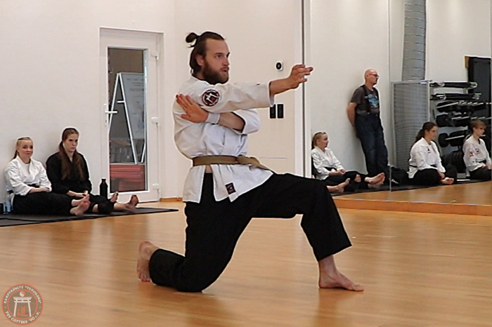 Erwärmung standen Kumite sowie Ippon und Kempo-Kumite auf dem Trainingsplan. Am Nachmittag ist die große Gruppe der Teilnehmern dann in 3 kleinere Gruppen aufgeteilt worden. Während sich Prüflinge unter den kritischen Augen und hilfreichen Tipps von Sensei Naß auf ihre bevorstehenden Prüfung vorbereiteten, welche am folgenden Wochenende
