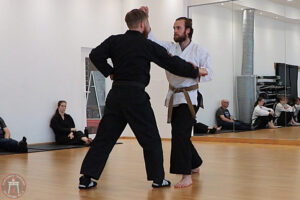 Ebenfalls im Nebengelass hat an diesem Wochenende durchgängig das Training für Iaido stattgefunden. Schwerpunkte waren hier unter anderem Anwendungen mit dem Bokken (Holzschwert) und der Geschwindigkeitsaufbau bei Kata. Darüber hinaus sind aber auch fordernde Inhalte – wie spezielle Techniken – abverlangt worden. So trainierte man unter anderem