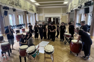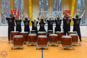Das Taiko-Training mit Jana Borchart und Christiane Ebrecht vom Ensemble Hibiki Daiko brachte unseren Trommlern wertvolle Impulse für die neuen Stücke „Tearaway“ und „San